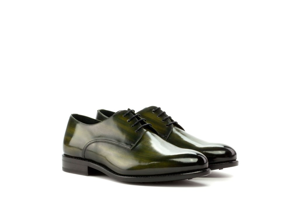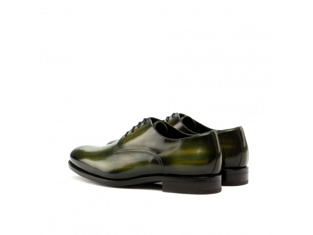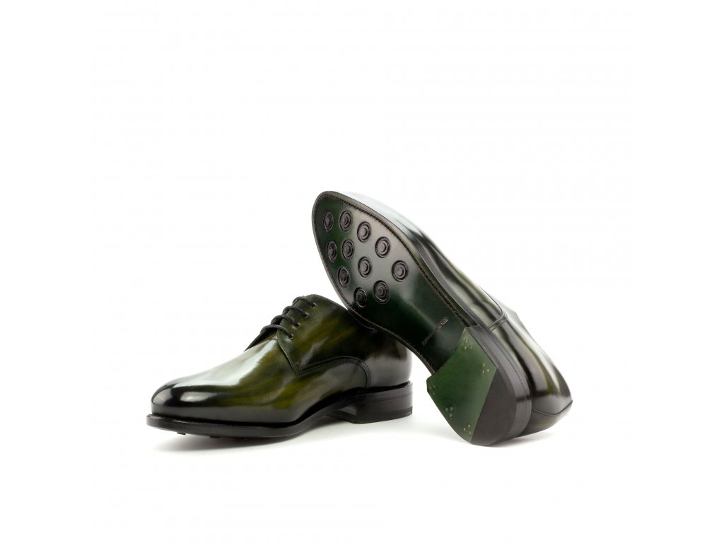 Ručně šité pánské polobotky typu derby, s efektem patina v barvě khaaki, s koženou protiskluzovou podešví.